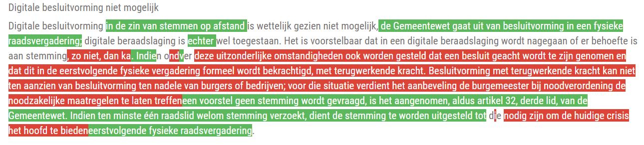 Afbeelding tekstvergelijking: rood is later doorgehaald, groen is toegevoegd